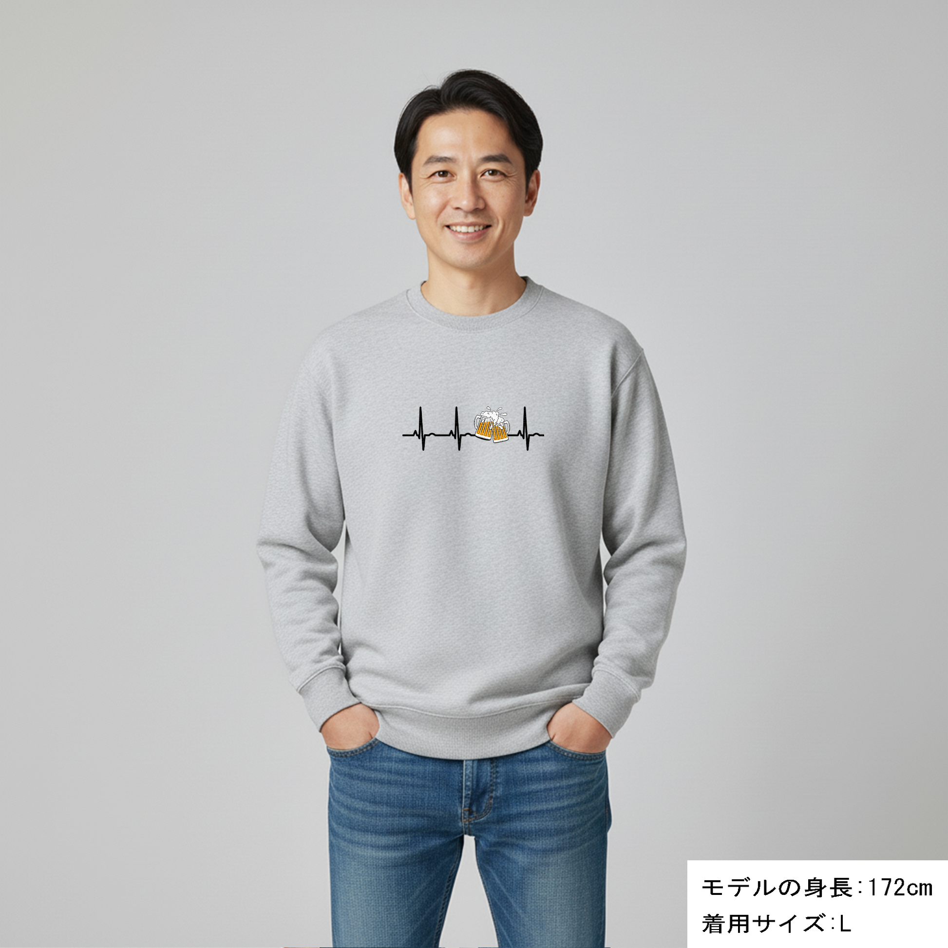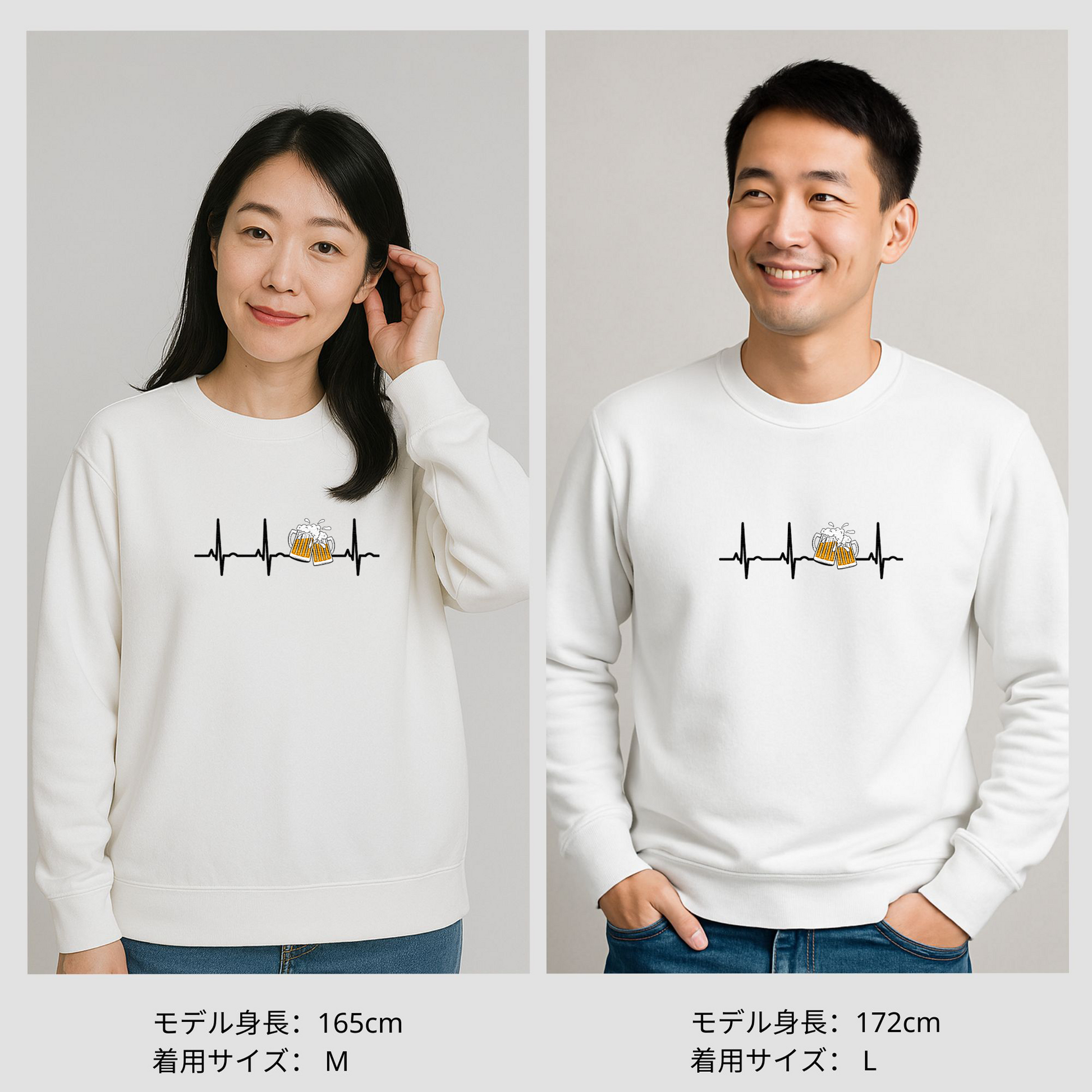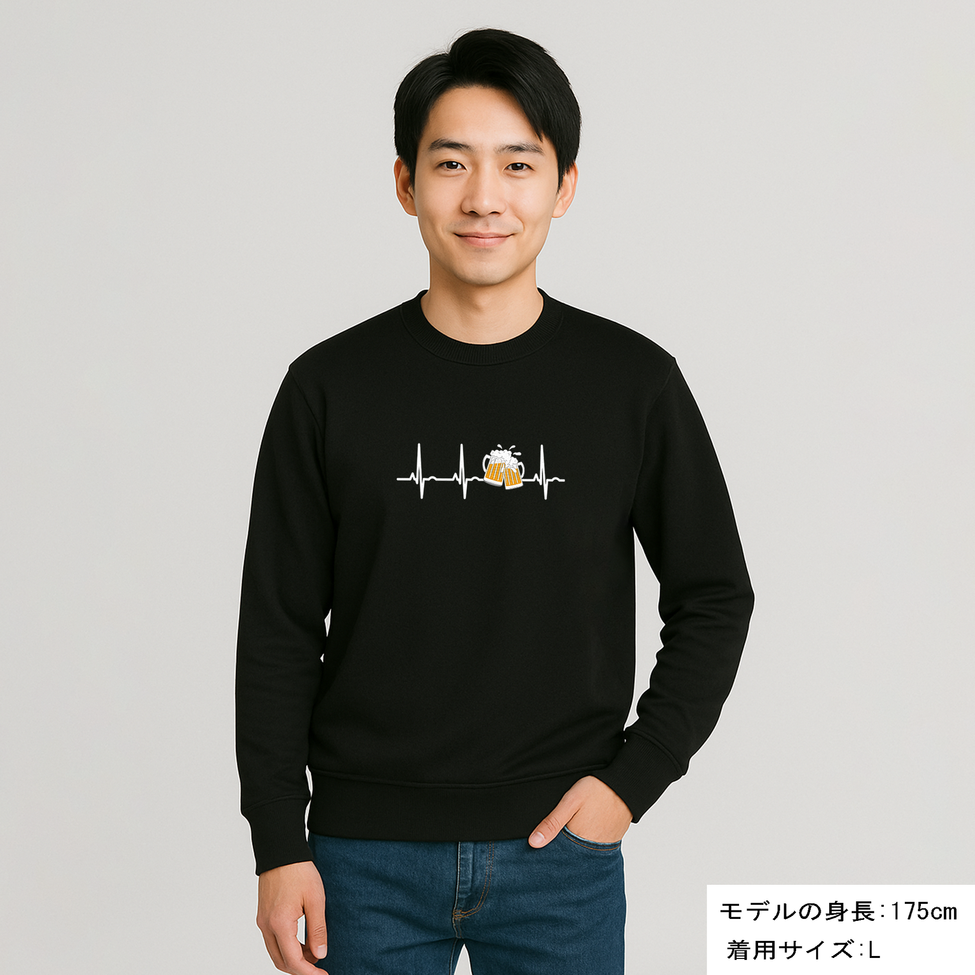 「ビールのハートビート 心電図」誕生日プレゼントにも最適!居酒屋・飲み会で話題の面白トレーナー|日本酒・ビール・焼酎・ウイスキー好きにおすすめ