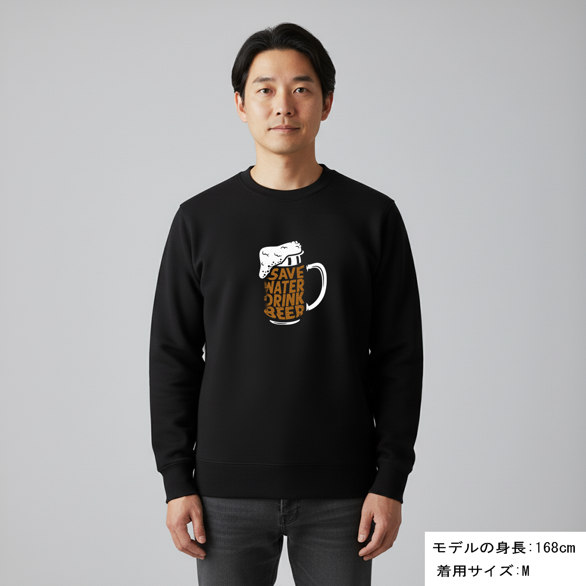 「 Save Water Drink Beer - ビールは水分補給」誕生日プレゼントにも最適!居酒屋・飲み会で話題の面白トレーナー|日本酒・ビール・焼酎・ウイスキー好きにおすすめ