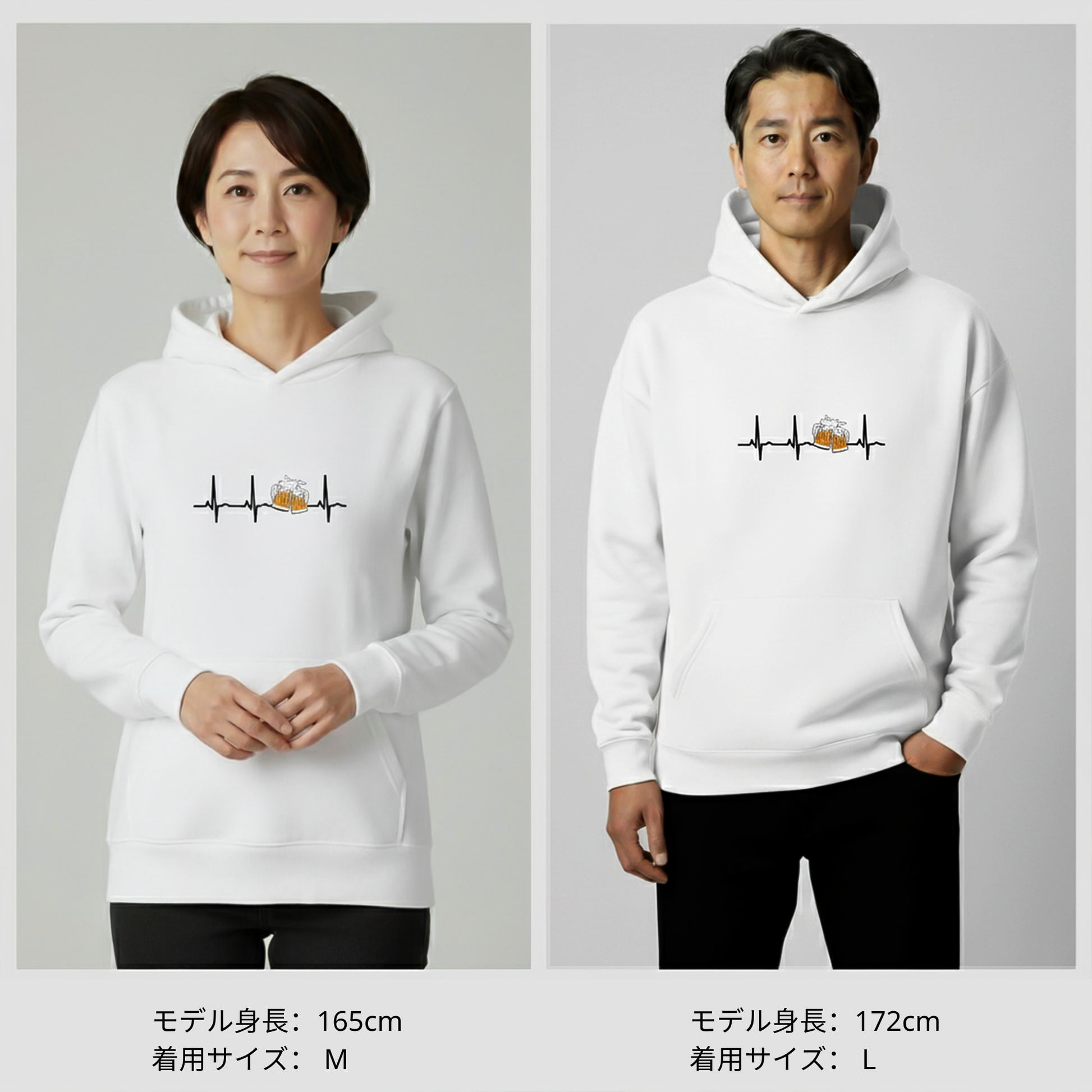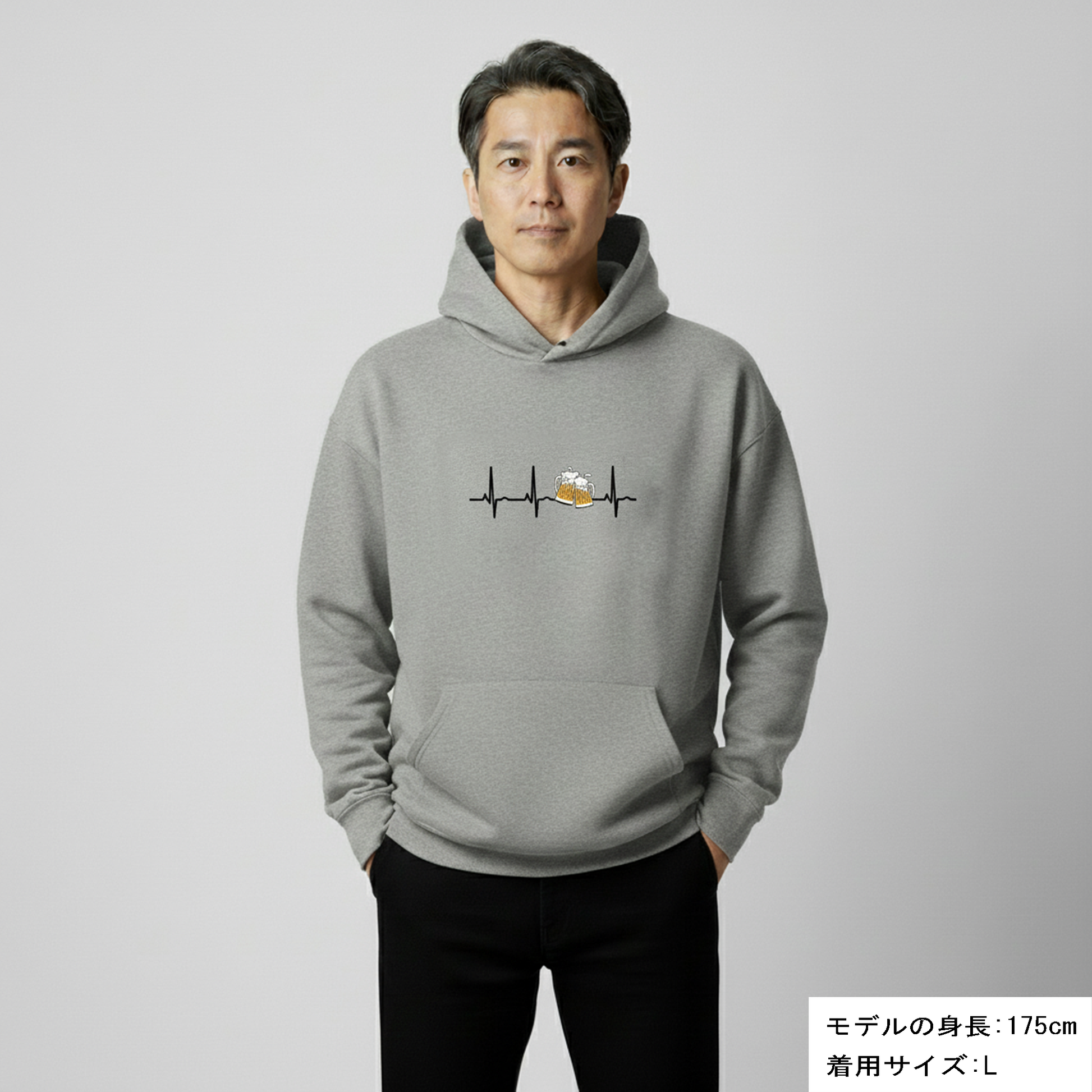 「ビールのハートビート 心電図」誕生日プレゼントにも最適!居酒屋・飲み会で話題の面白パーカー|日本酒・ビール・焼酎・ウイスキー好きにおすすめ