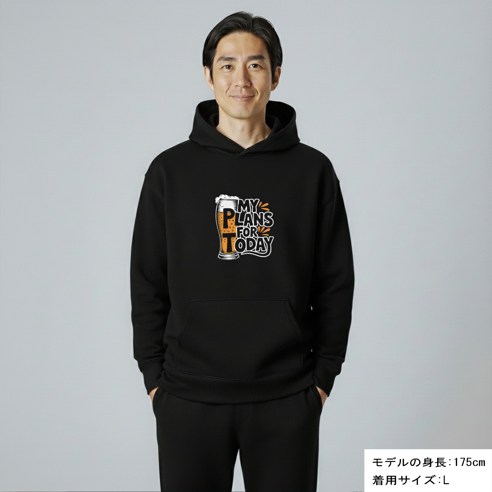 「MY PLAN FOR TODAY 」誕生日プレゼントにも最適!居酒屋・飲み会で話題の面白パーカー|日本酒・ビール・焼酎・ウイスキー好きにおすすめ