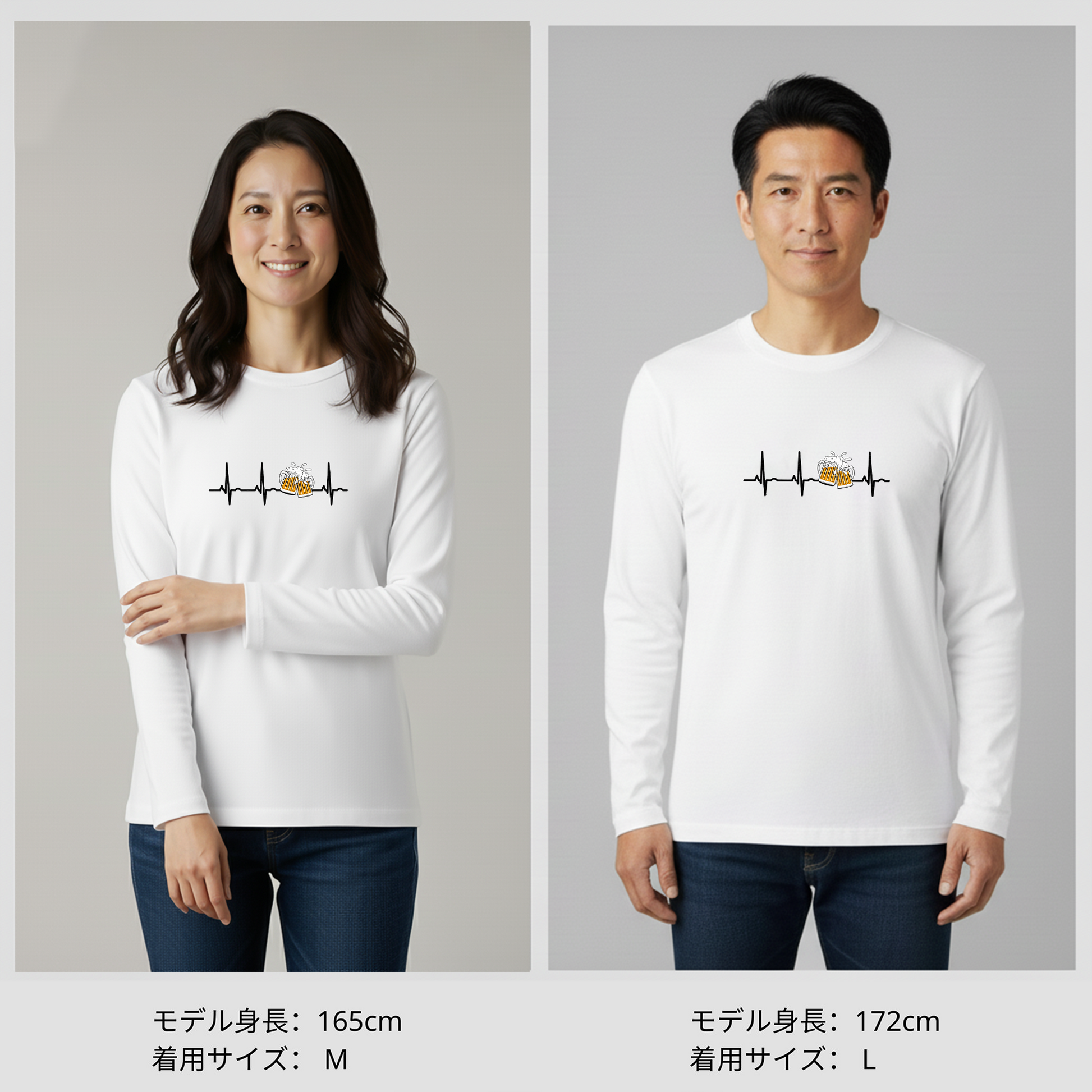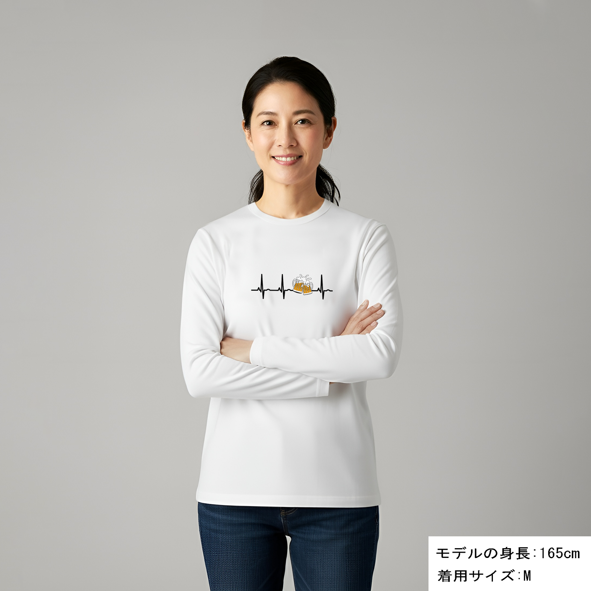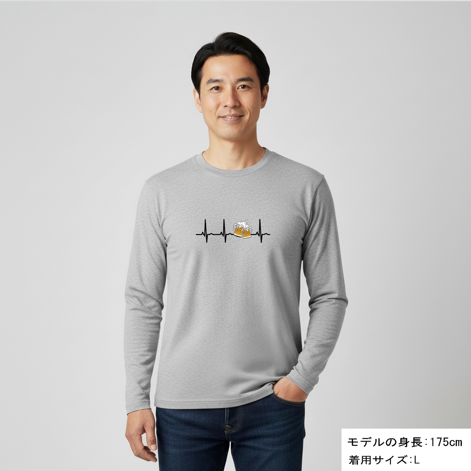 「ビールのハートビート 心電図」誕生日プレゼントにも最適!居酒屋・飲み会で話題の面白長袖tシャツ|日本酒・ビール・焼酎・ウイスキー好きにおすすめ