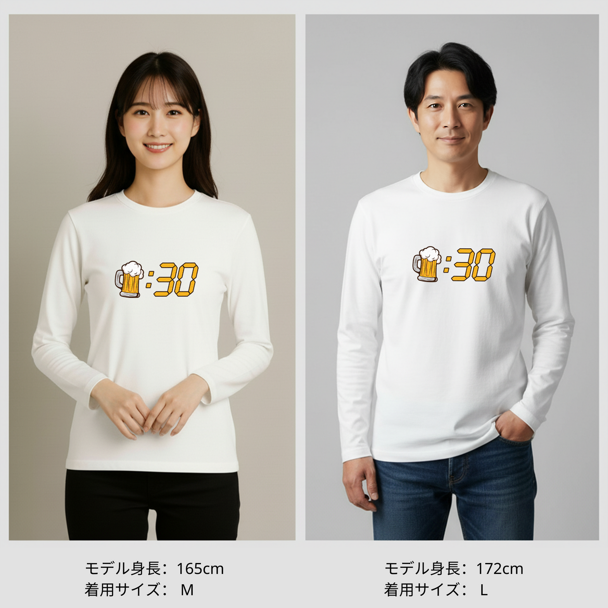 「ビール:30」誕生日プレゼントにも最適!居酒屋・飲み会で話題の面白長袖tシャツ|日本酒・ビール・焼酎・ウイスキー好きにおすすめ