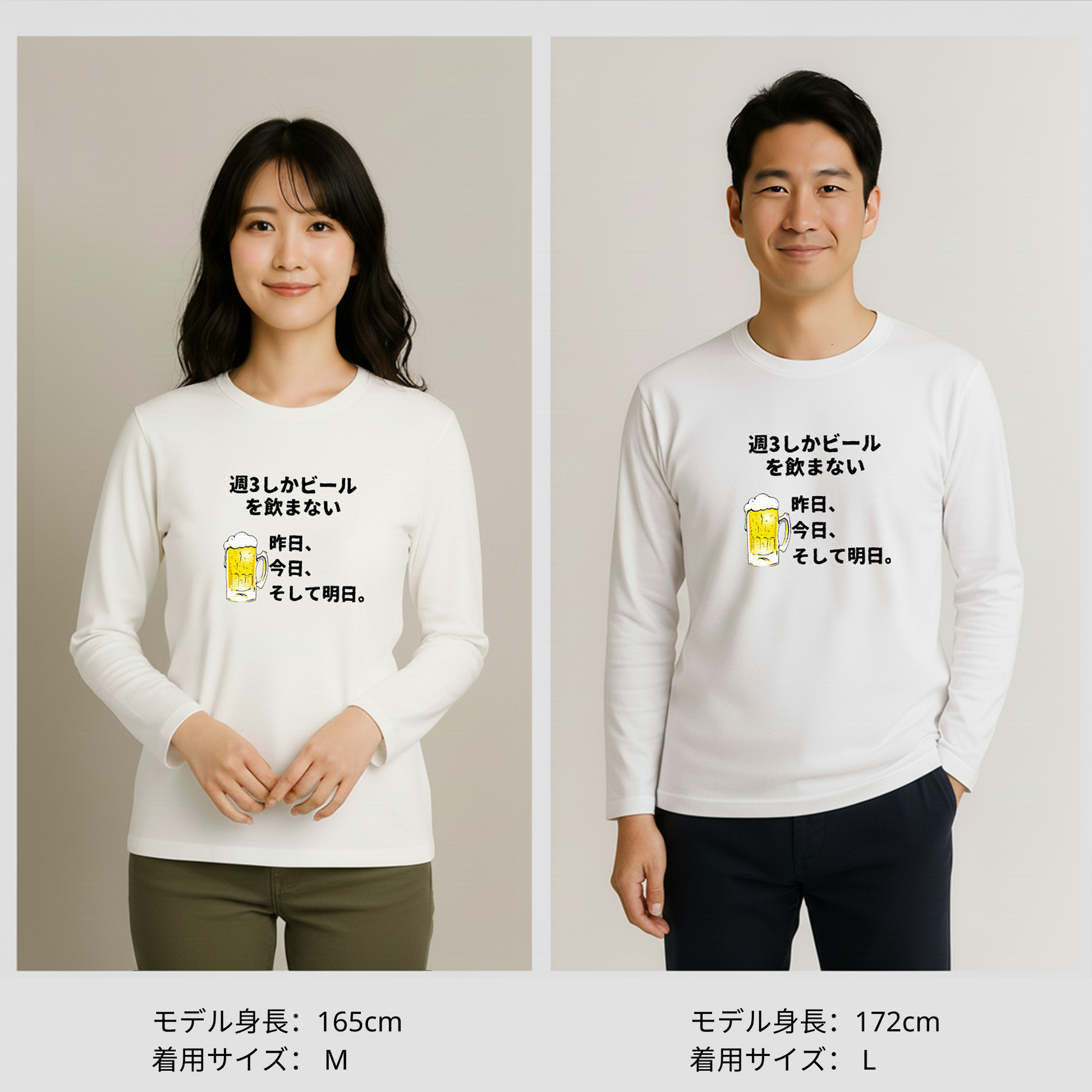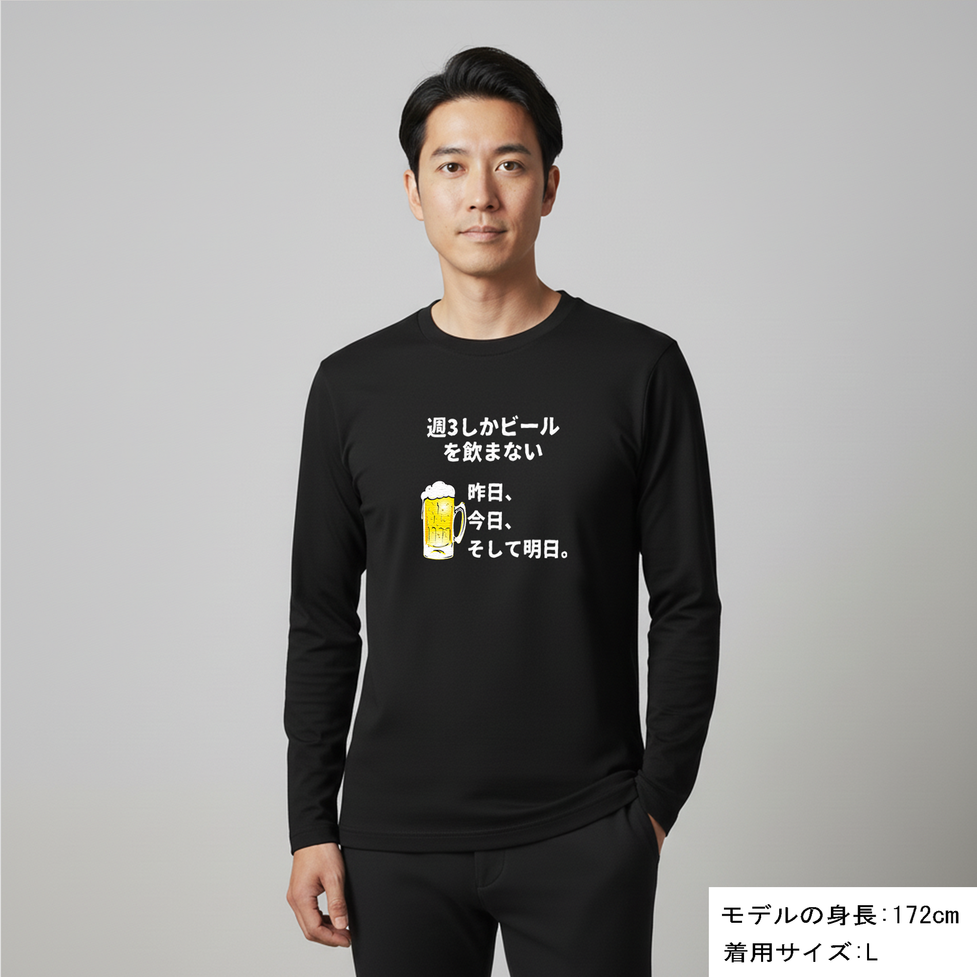 「週3しかビールを飲まない」誕生日プレゼントにも最適!居酒屋・飲み会で話題の面白長袖tシャツ|日本酒・ビール・焼酎・ウイスキー好きにおすすめ