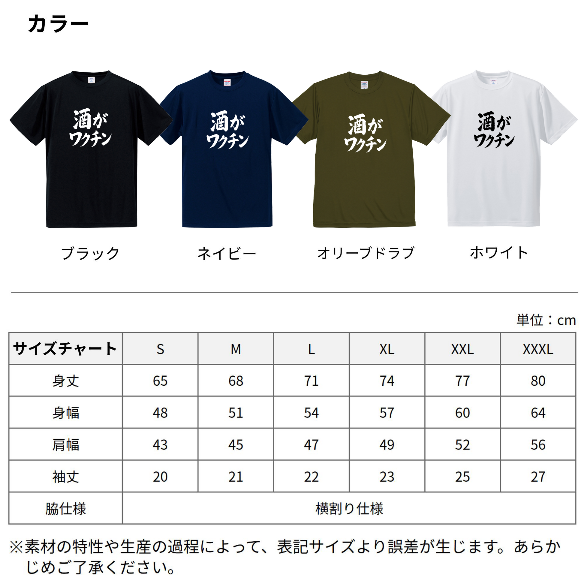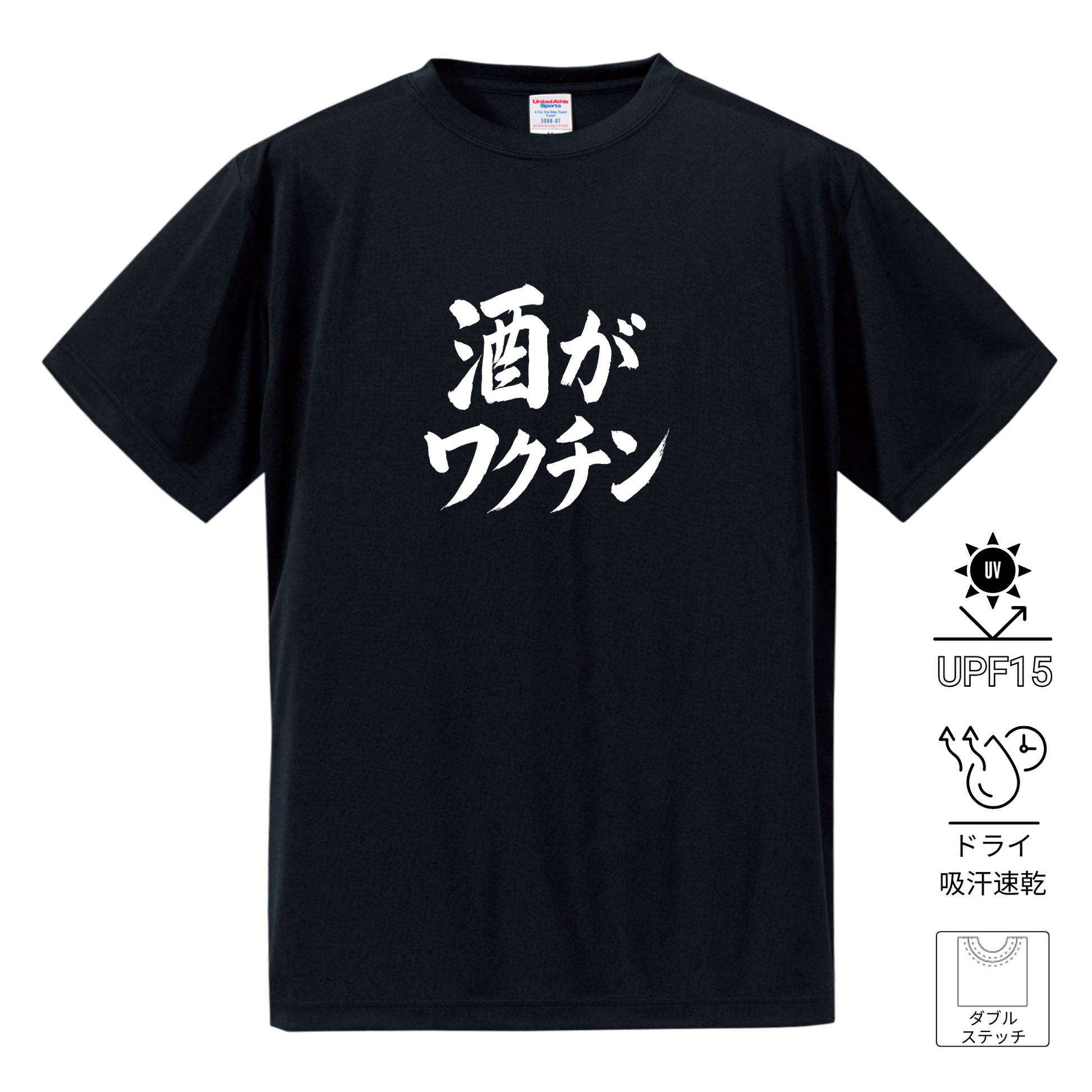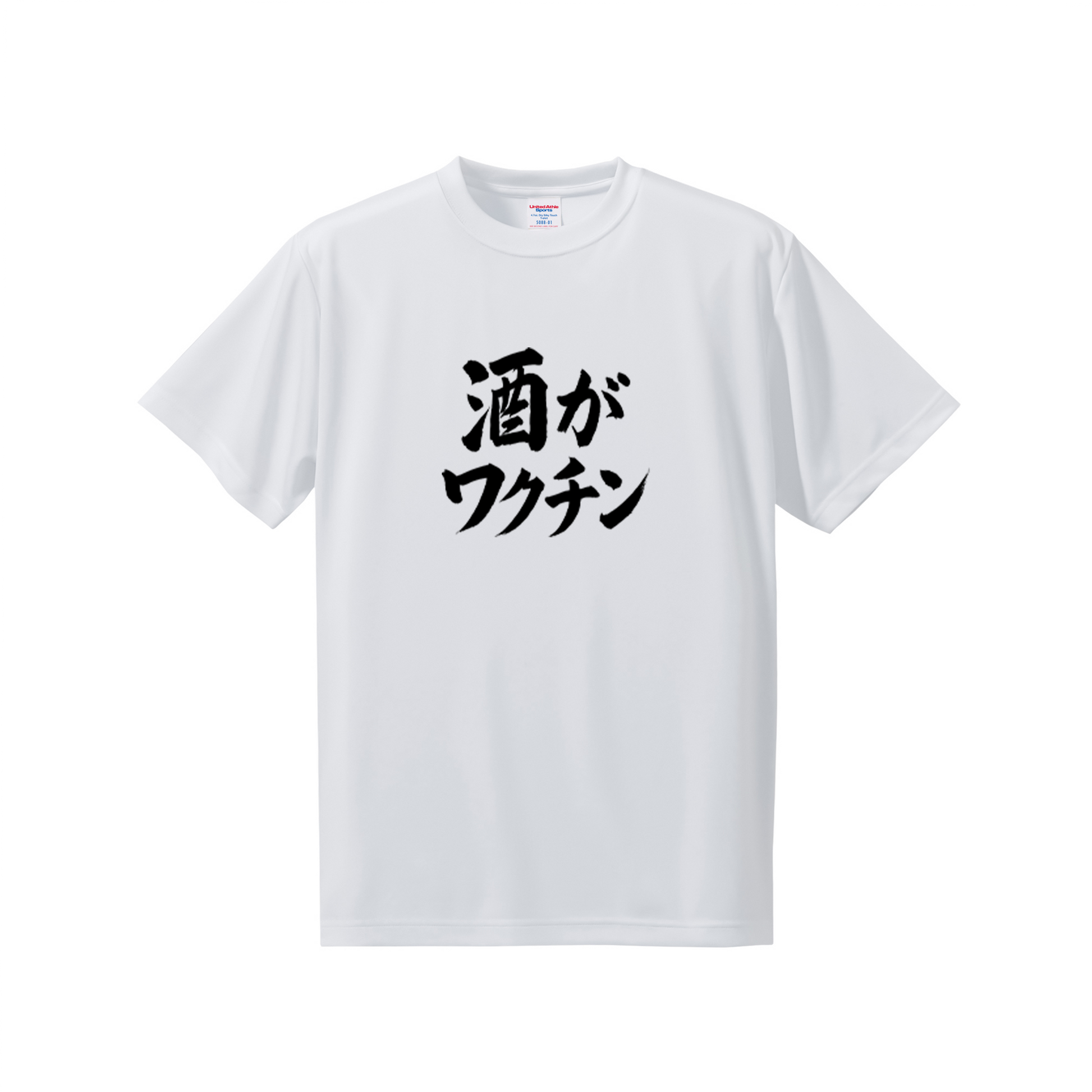 「 酒がワクチン」誕生日プレゼントにも最適!居酒屋・飲み会で話題の面白ドライシルキータッチTシャツ|日本酒・ビール・焼酎・ウイスキー好きにおすすめ