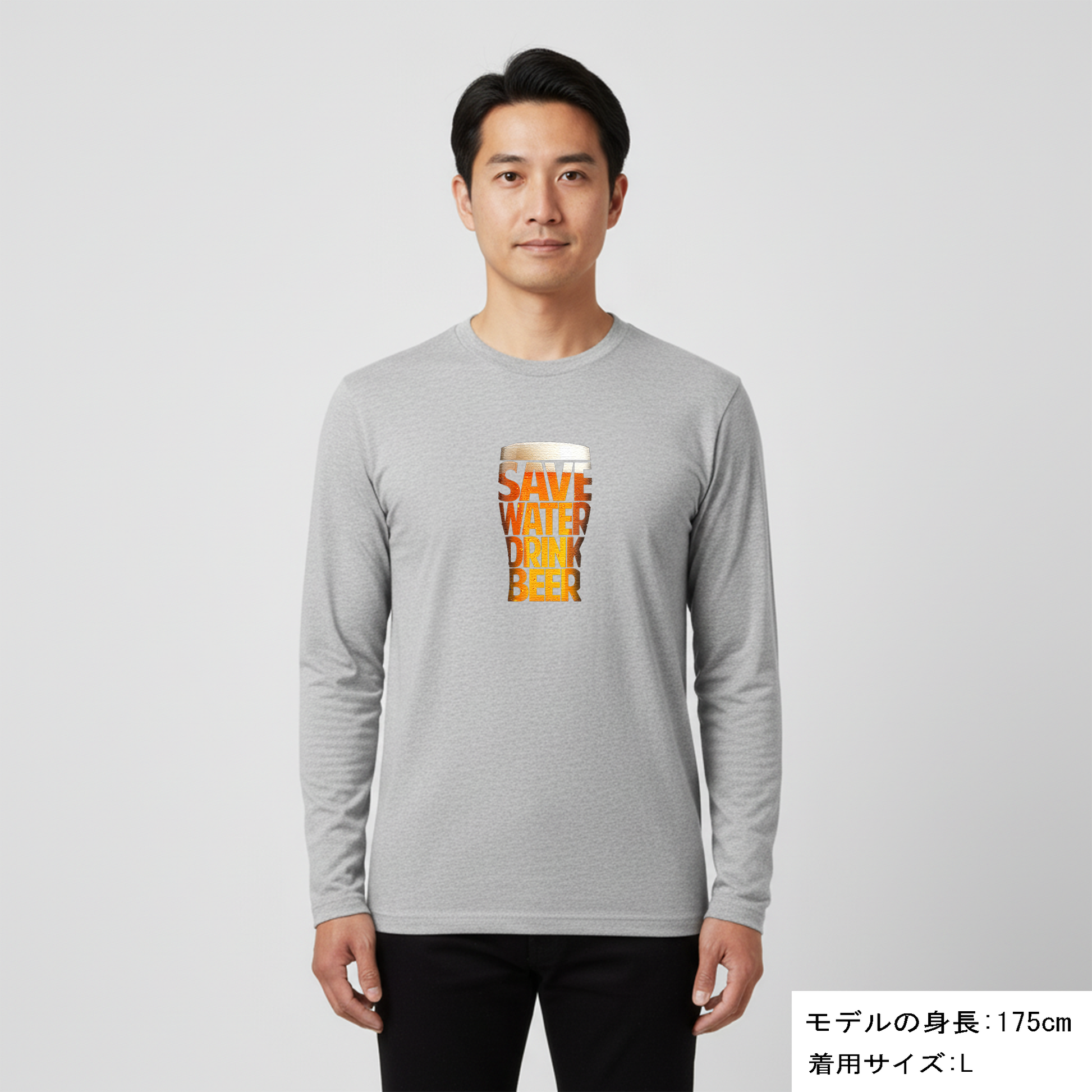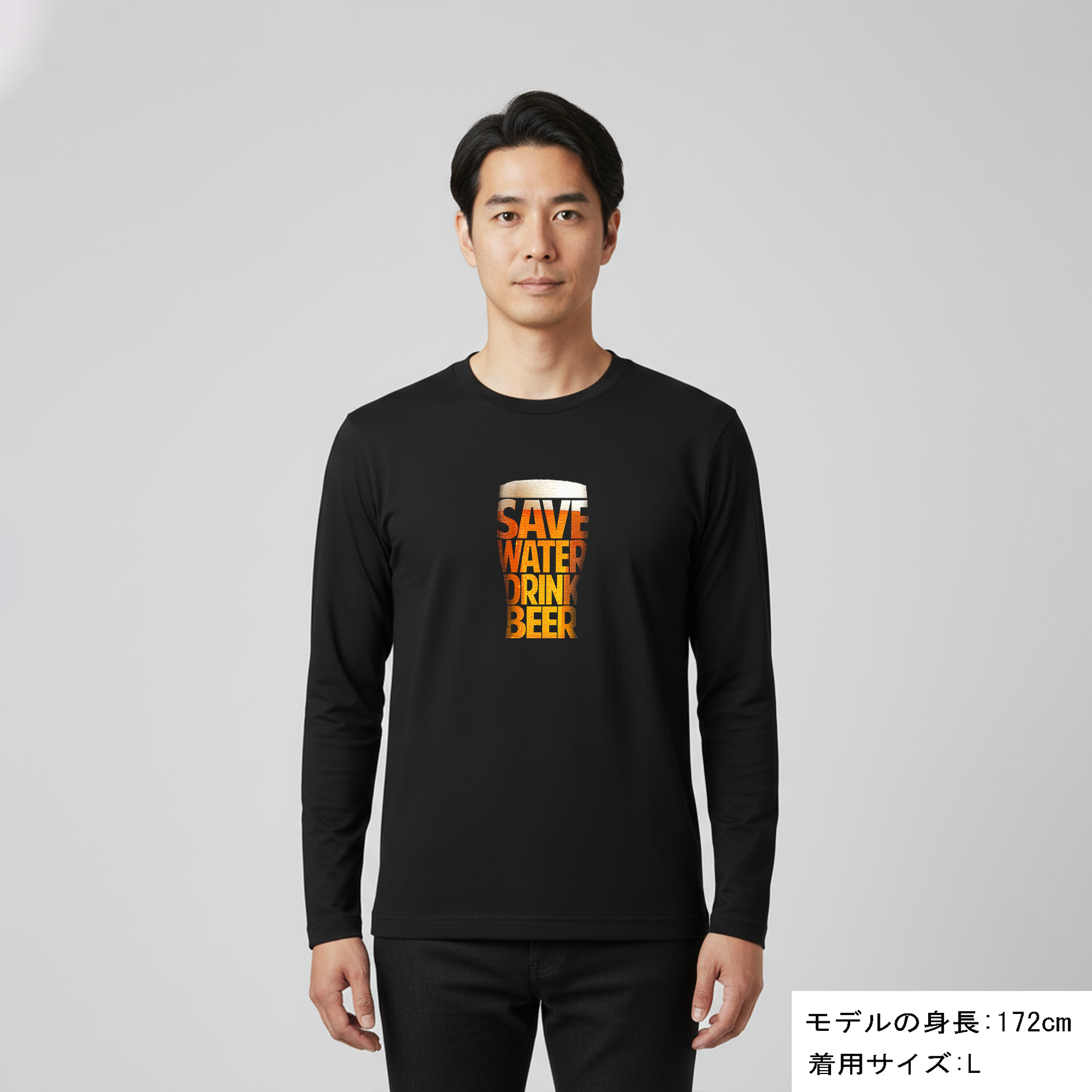 「SAVE WATER DRINK BEER」誕生日プレゼントにも最適!居酒屋・飲み会で話題の面白長袖tシャツ|日本酒・ビール・焼酎・ウイスキー好きにおすすめ